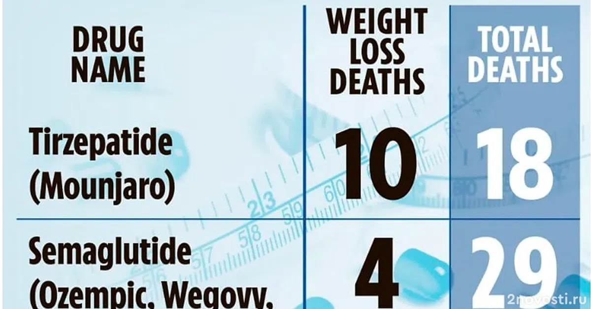 На конец января, 18 человек скончались после использования «Мунджаро», 29 человек – после применения препаратов «Оземпик», «Вегови» и «Ребелсас», еще 35 человек умерли после использования препаратов «Саксенда» и «Виктоза».